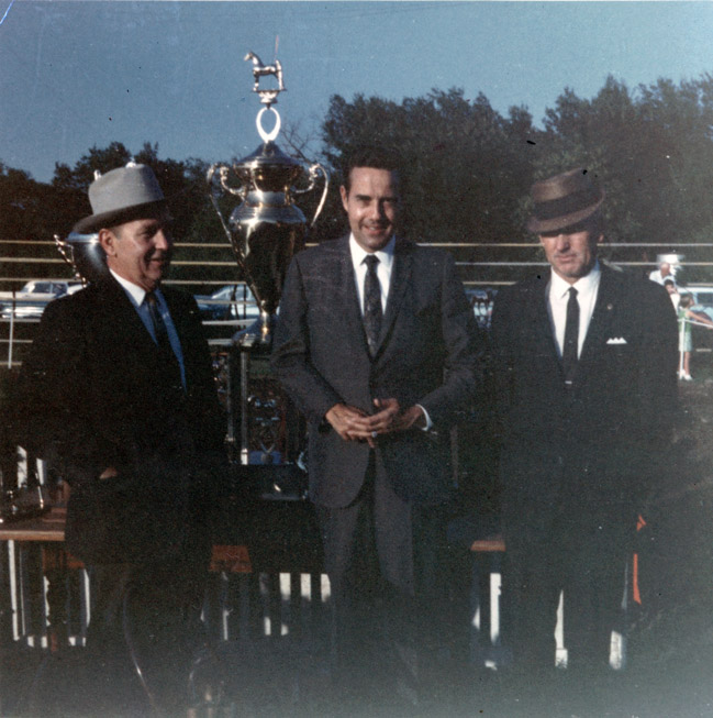 Dole with two men in front of large trophy | Dole Archive Collections