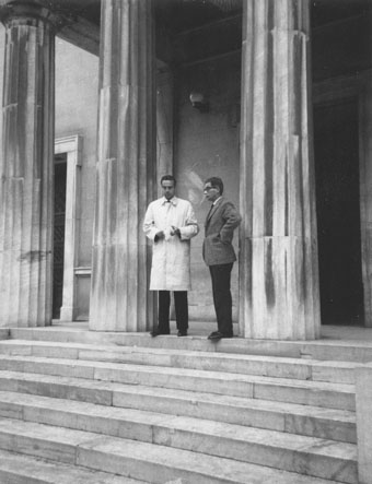 Dole and unknown man on classical-style steps | Dole Archive Collections