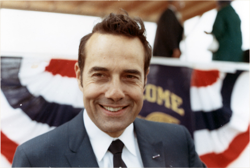 Item 21: Bob Dole in front of decorative flag at Marion Reservoir, 1969-07-05