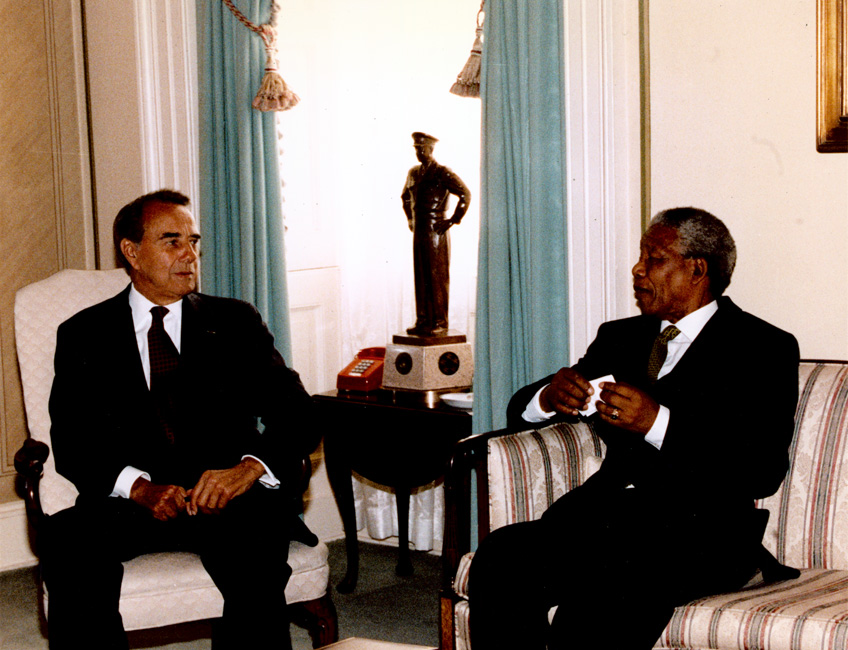 Bob Dole and Nelson Mandela conversing | Dole Archive Collections
