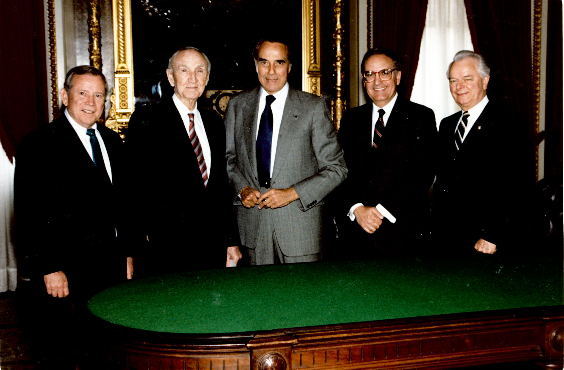 Color, 8" x 10"Baker, Howard H. (Howard Henry), 1925-; Mansfield, Mike, 1903-2001; Dole, Robert J., 1923-; Mitchell, George J. (George John), 1933-; Byrd, Robert C.; posing together