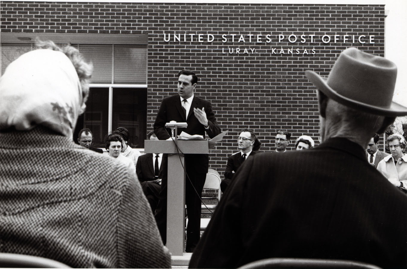 Bob Dole giving speech at post office in Luray, Kansas | Dole Archive Collections