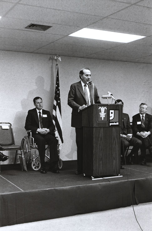 Item 1: Senator Dole at podium for Easter Seal Voting Accessibility Press Conference, February 25, 1984