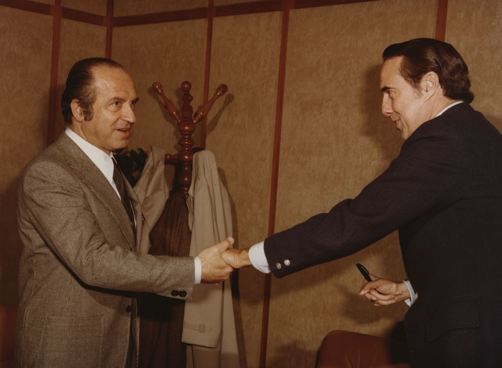 Senator Bob Dole shaking hands with Director General of FAO, Edoward Saouma | Dole Archive Collections