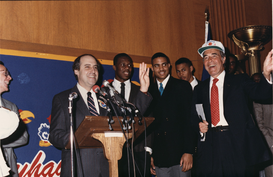 Item 1: Representative Dan Glickman celebrating with KU Basketball players, 1988