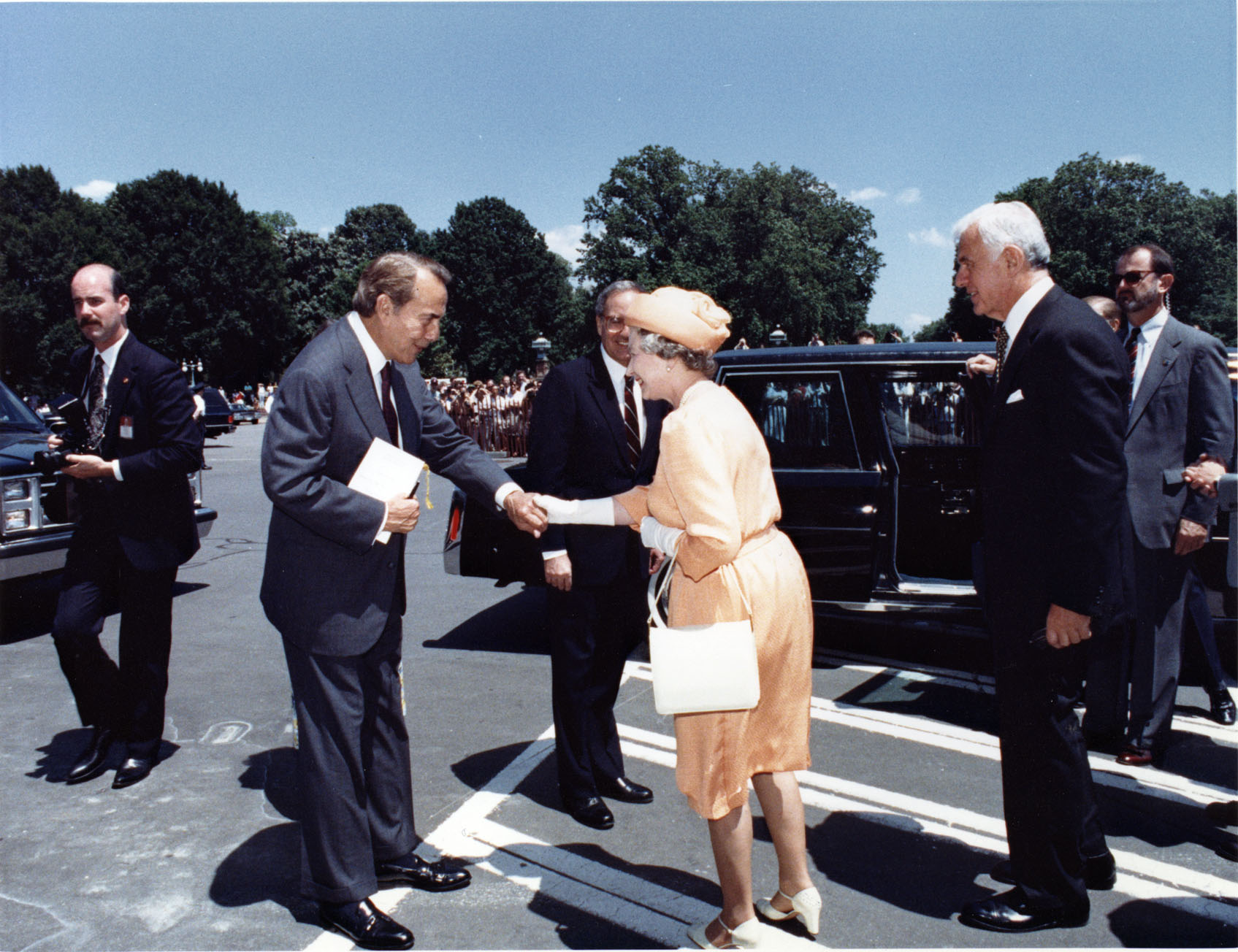 Senator Bob Dole welcoming Queen Elizabeth II, Great Britain, 1991