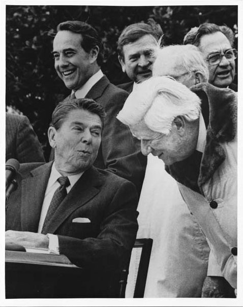 Bob Dole enjoying a laugh with President Reagan, 1983