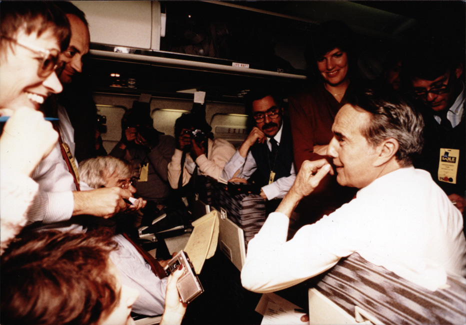 Bob Dole speaking to reporters on an airplane | Dole Archive Collections