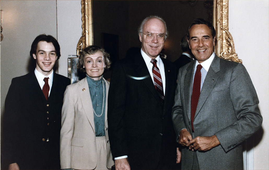 Bob Dole posing with Patrick Leahy, Marcelle Pomerleau Leahy and their son, Kevin | Dole Archive Collections
