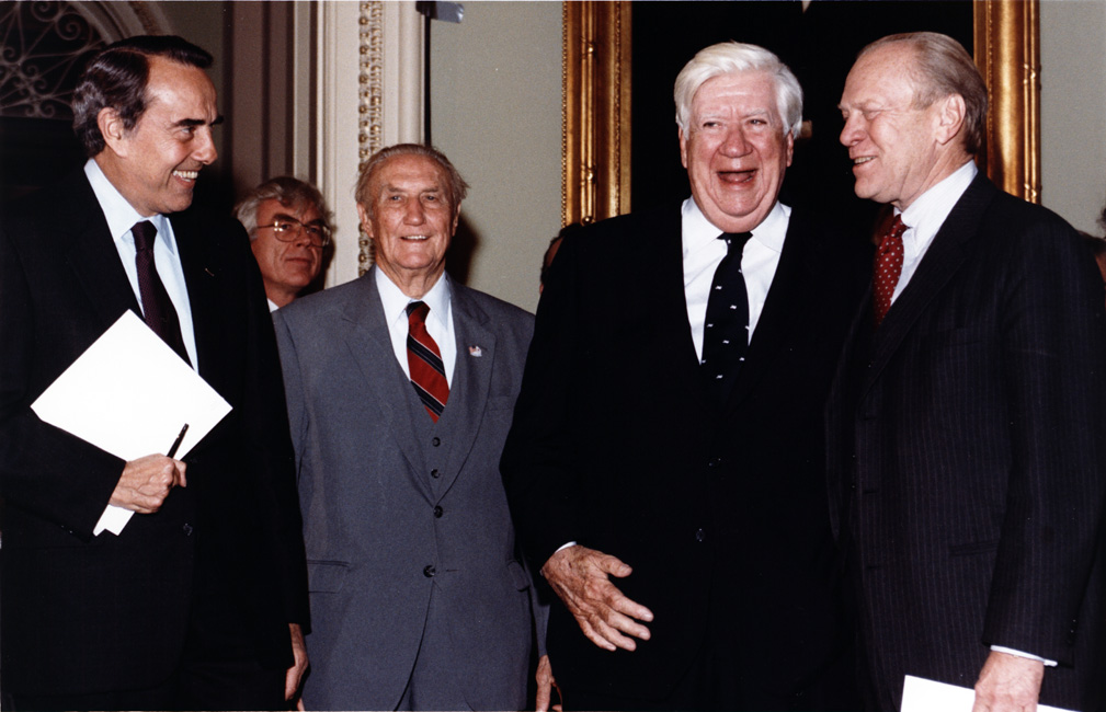 Bob Dole standing with Strom Thurmond, Tip O'Neill and Gerald Ford at Capitol bust dedication | Dole Archive Collections