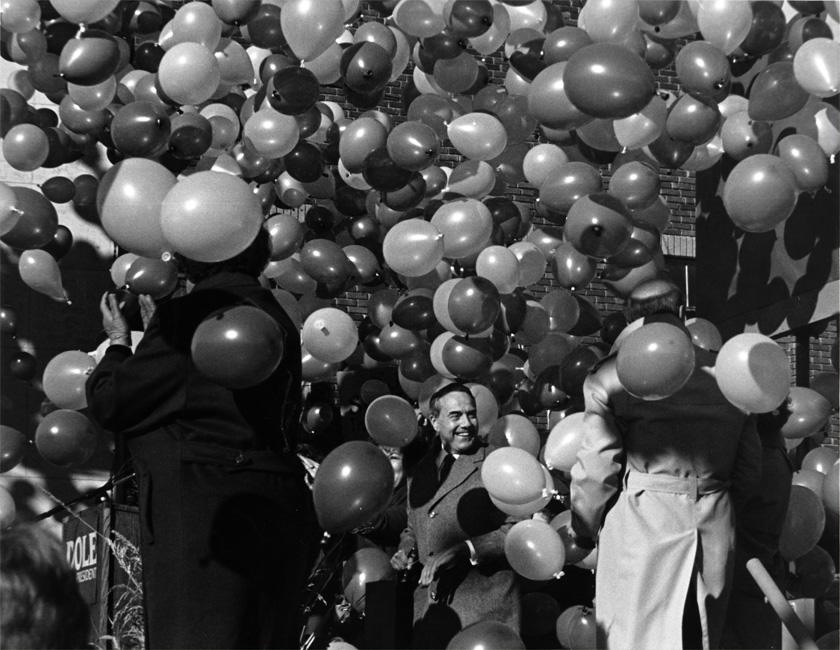 Bob Dole standing in a cloud of balloons | Dole Archive Collections