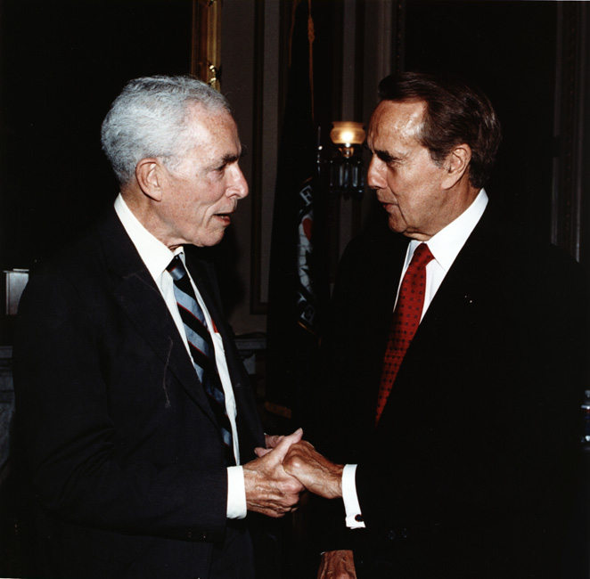Bob Dole with Senator Claiborne Pell at retirement party