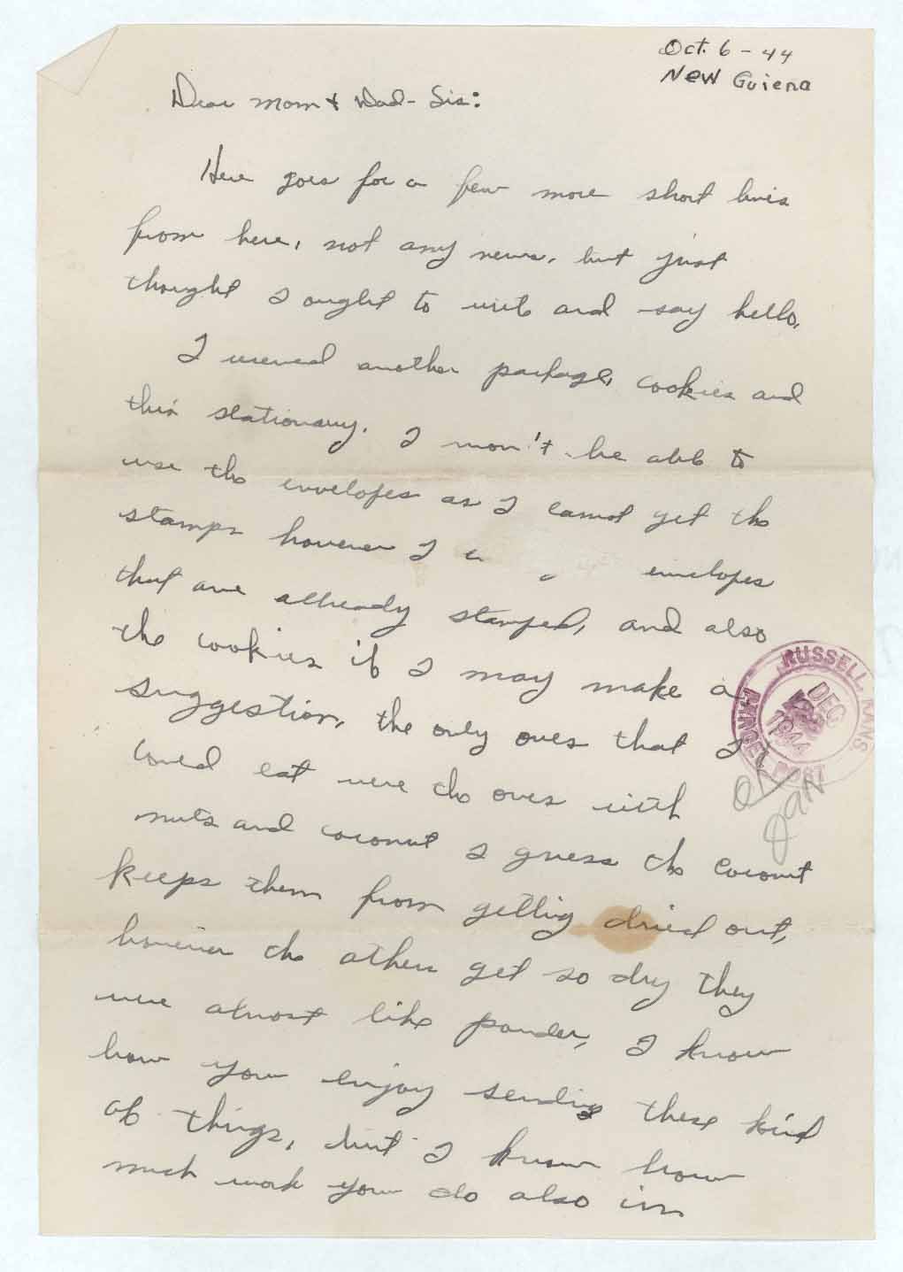 Kenneth Dole to Mom and Dad and Sis | Dole Archive Collections
