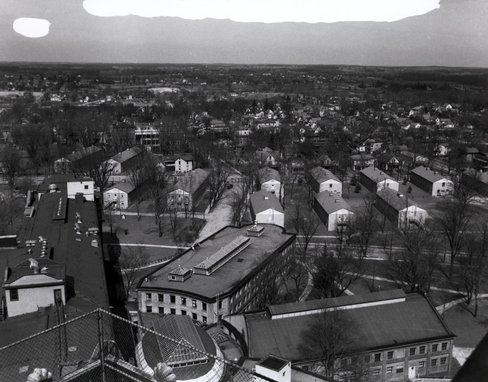 A birds-eye view of Percy Jones hospital buildings 9,10,12,13,14,15, 16, 25 and 26 in 1946.