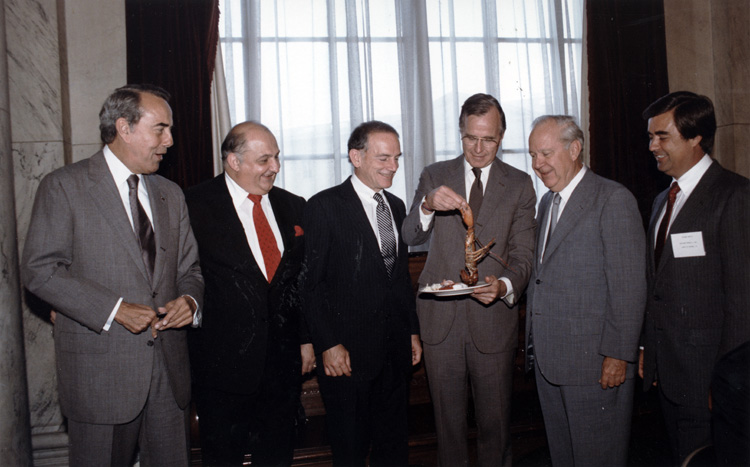 George H.W. Bush holding up a lobster | Dole Archive Collections