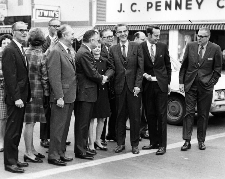Gathering of many outside of J.C. Penny Company | Dole Archive Collections