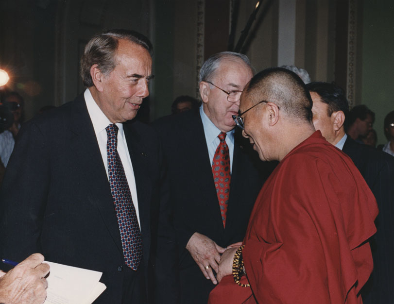 Dalai Lama speaking with Senators Dole and Helms | Dole Archive Collections