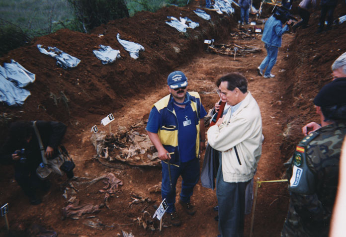 Senator Bob Dole visiting a mass gravesite in Kosovo, 1998