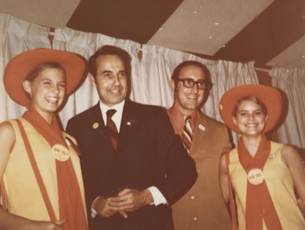 Dole posing with "Bob Ray" buttons | Dole Archive Collections