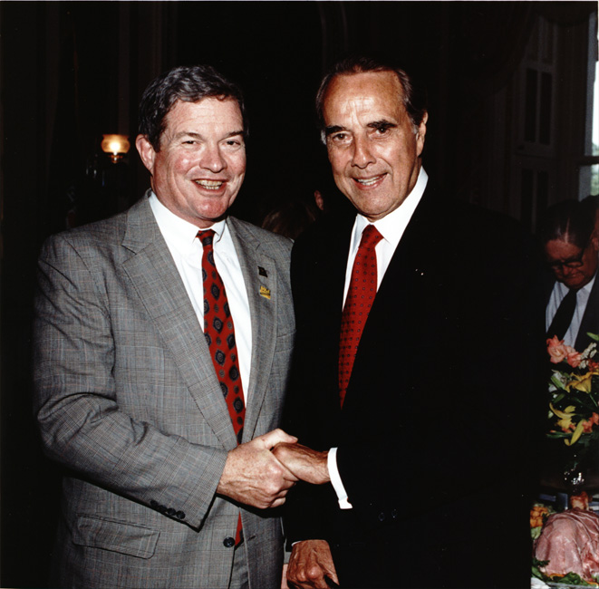 Bob Dole shaking hands with Senator Christopher Bond | Dole Archive Collections