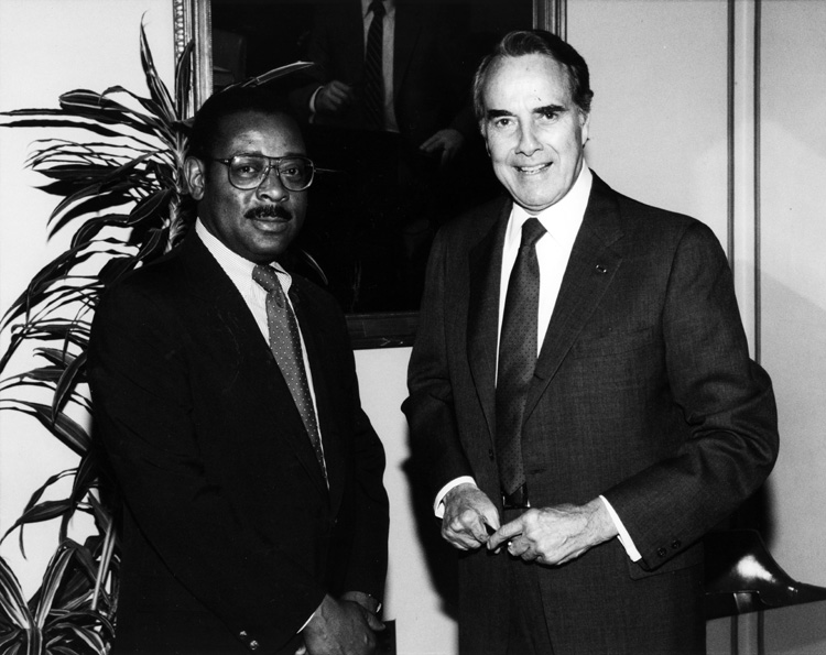 Item 1: Commissioner Andrew Barrett and Bob Dole. 5/11/1990. B&W, Barrett, Andrew C.; Dole, Robert C.