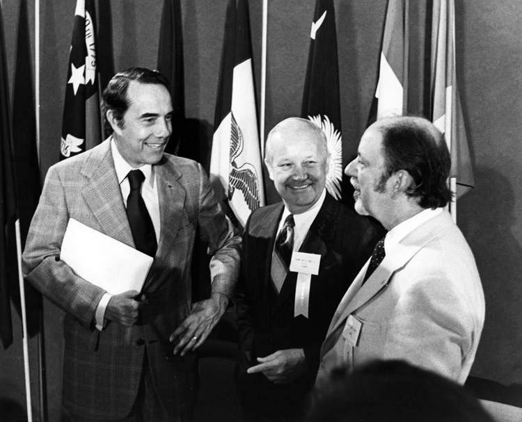Item 1: Republican Governors Association (RGA) Mid-Winder Meeting. Inscriptions: l to r: Sen. Robert Role, Kansas Gov Arch Moore, W. VA. Gov. Robert Bennett, Kansas 1976 RGA Mid-Winter Meeting.