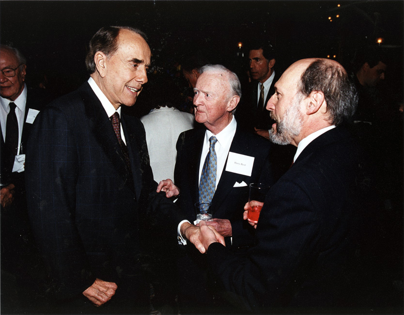 Bob Dole shaking hands with Chuck Robb while Harry Byrd looks on | Dole Archive Collections