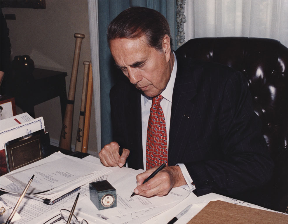 Senator Dole signing paper