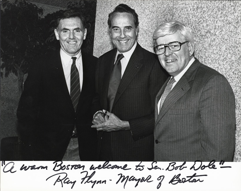 Inscriptions: Front: A Warm Boston Welcome to Sen. Bob Dole-- Ray Flynn, Mayor of Boston