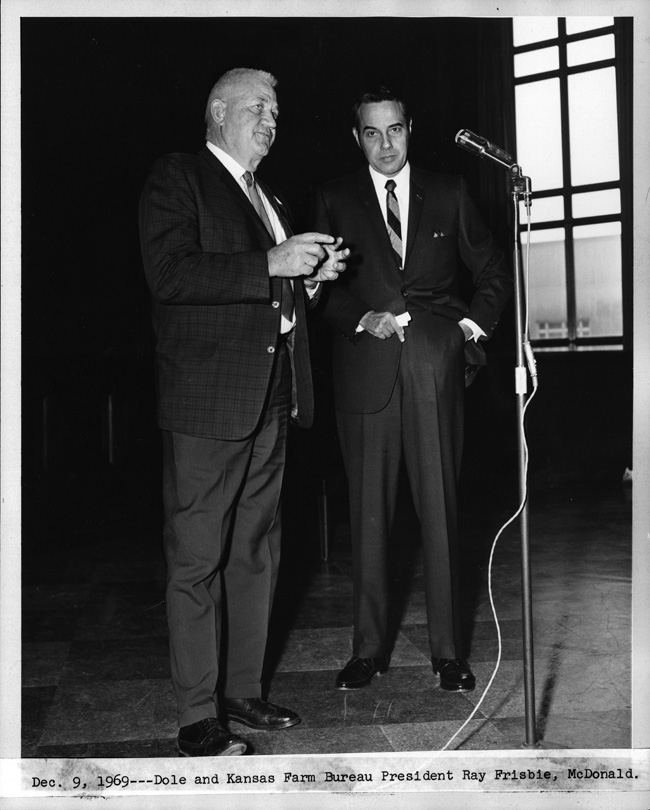 Inscriptions: Front: Dec. 9, 1969-- Dole and Kansas Farm Bureau President Ray Frisbie, McDonald