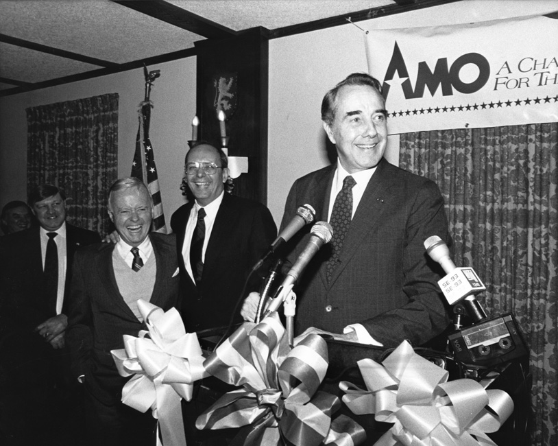 Bob Dole at podium with ribbons