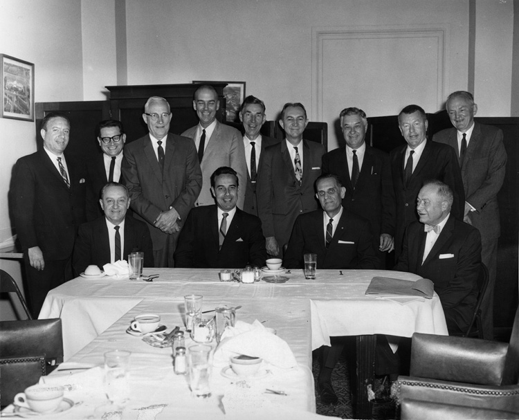 Item 1: Kansas Representatives at a table. 5/25/1966. Inscriptions: Wednesday May 25-1966, Luncheon for Charles Haslet- Joe [illeg.] Dining Room.
