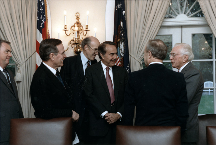 Item 11: George H.W. Bush and Alan Simpson and others congratulating Bob Dole. 4/17/1990.