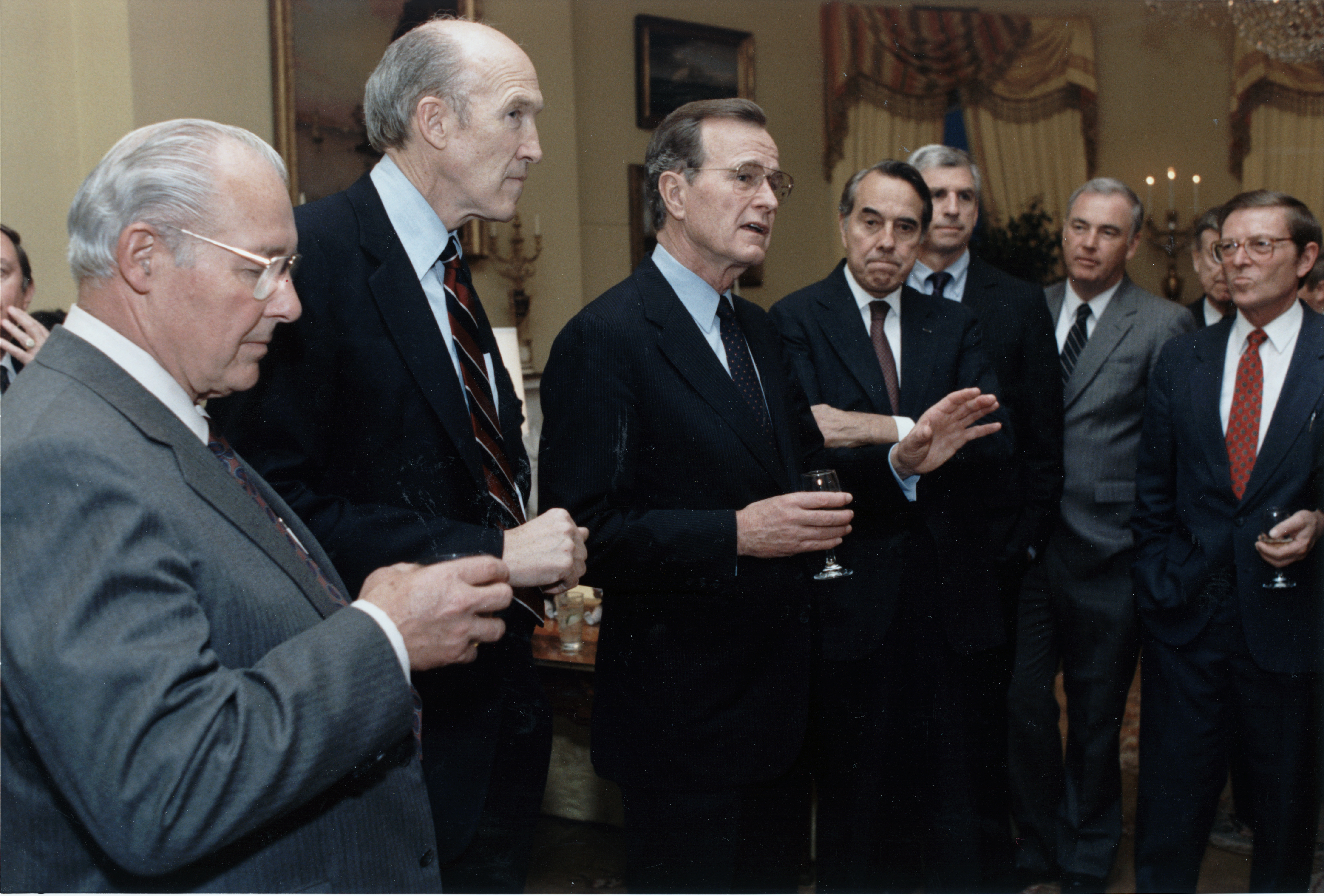 George H.W. Bush talking with drink in hand | Dole Archive Collections