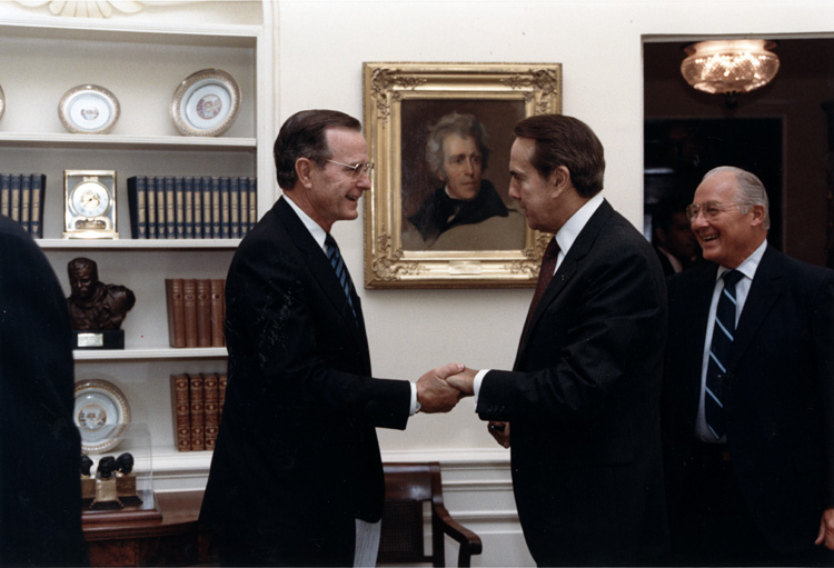 Senator Dole and President Bush shaking hands | Dole Archive Collections