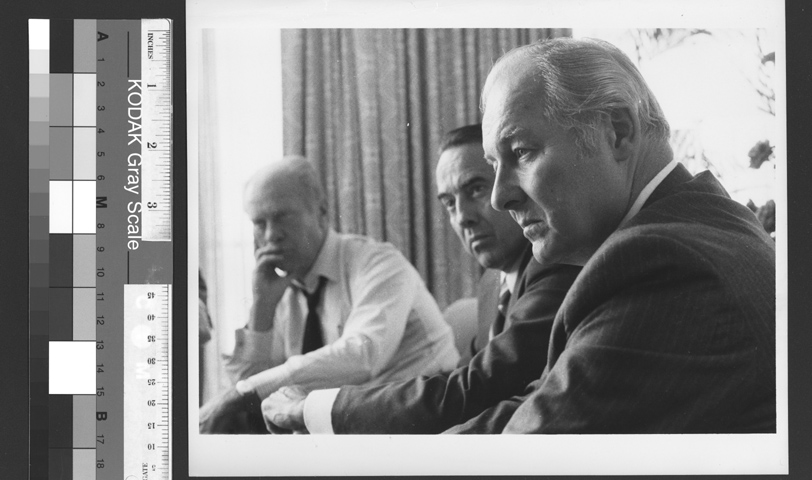 Gerald Ford and Bob Dole listening at meeting | Dole Archive Collections