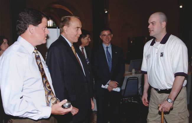 Sen. Dole with Brian Ruhe showing orthotic legs
