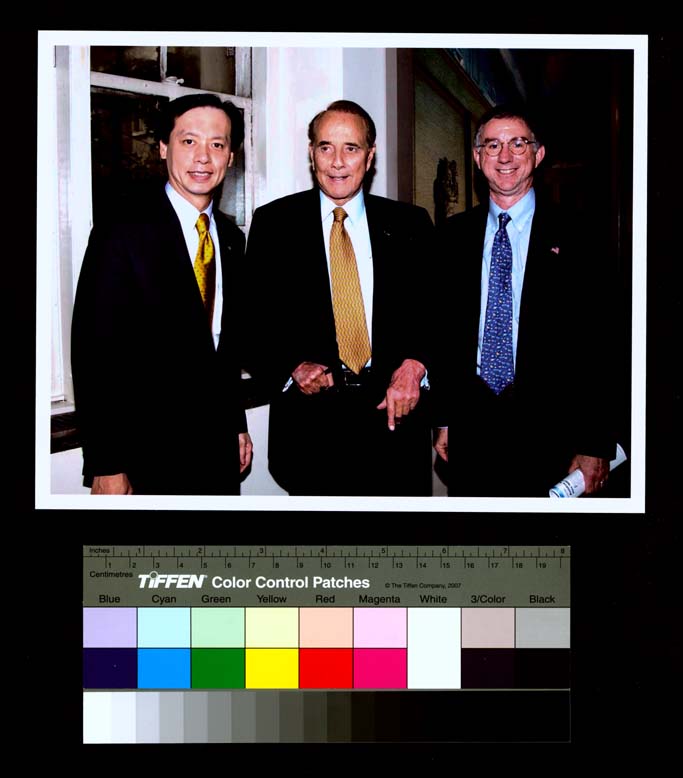 Sen. Dole with two attendees at ADA Anniversary celebration, one being Theodore Kassinger, 8x10 color, with letter from Theodore Kassinger, deputy Secretary of Commerce