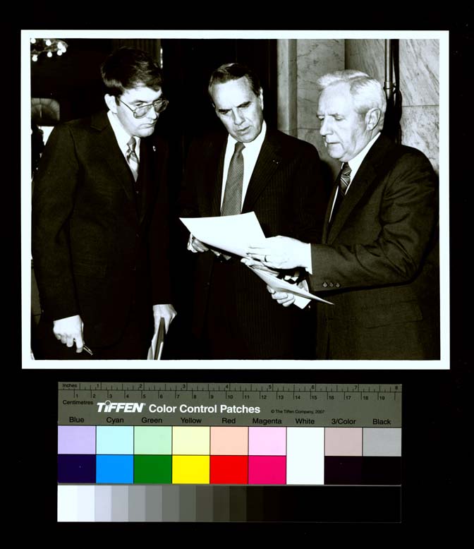 Dole and John Grubb after testimony in support of Dole bill setting penalties for fraudulent adoption practices