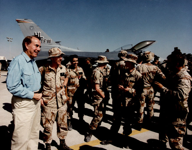 Dole, Robert J., 1923-; Talking with soldiers of Desert Storm in Saudi Arabia