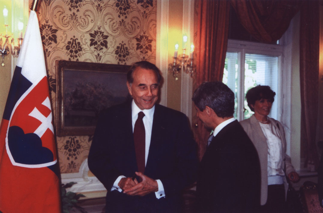 Sen. Dole talking with Slovakian Prime Minister Mikulas Dzurinda