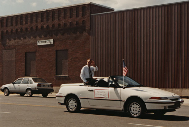Senator Dole waving from car in parade