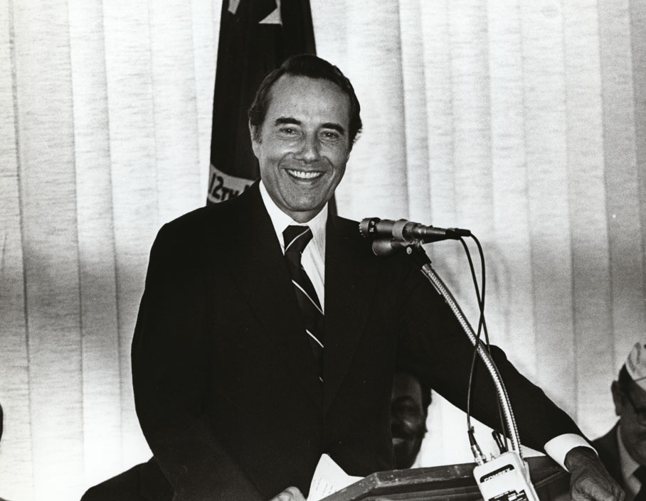 Bob Dole at podium smiling at camera