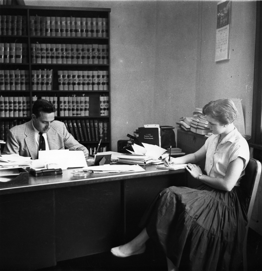 Bob Dole, County Attorney of Russell, KS dictating to secretary, 1955 | Dole Archive Collections