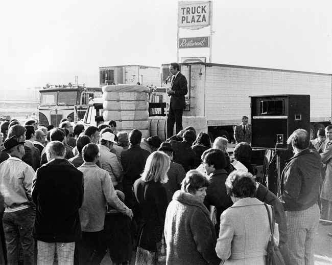 Senator Bob Dole campaigning at truck stop, 1974 | Dole Archive Collections