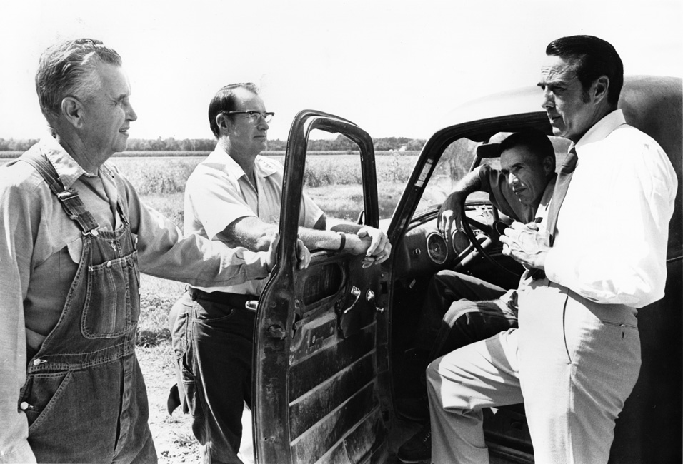 Bob Dole converses with Kansas farmers