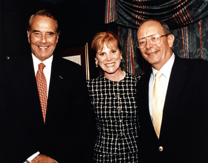 Dole, Robert J., (1923-);____; and D'amato, Alfonse. Bob Dole is posed with an unidentified woman and Alfonse D'amato. Photograph created by Richard Sobol.
