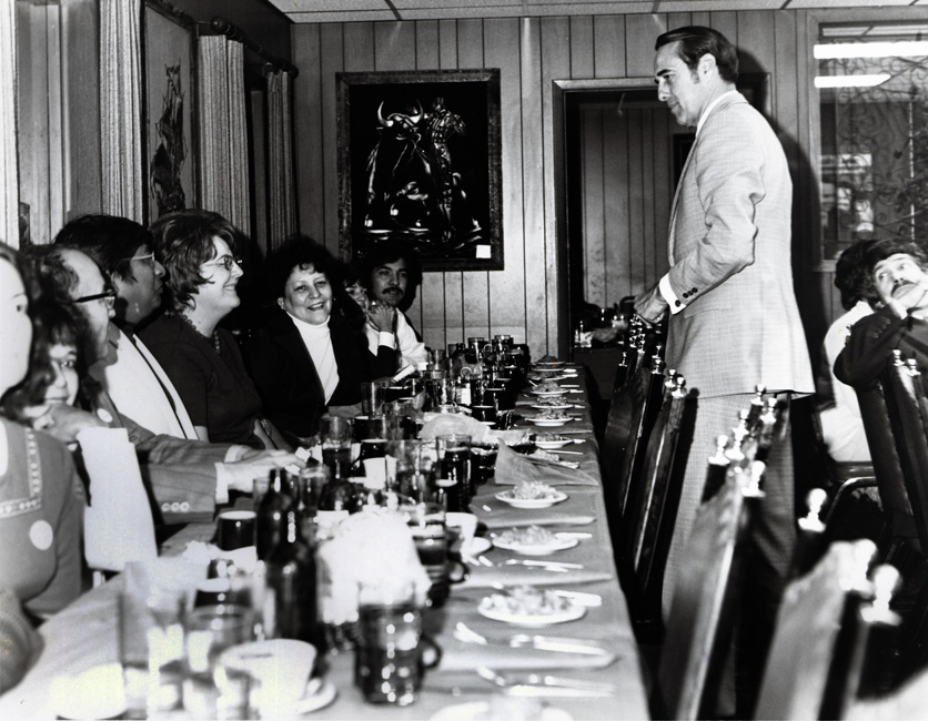 Bob Dole visiting with luncheon/dinner group. | Dole Archive Collections