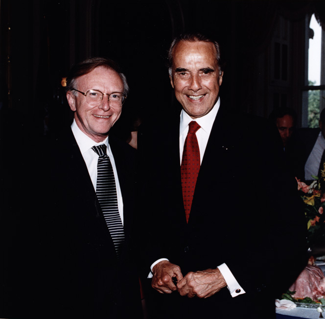 Bob Dole with Senator Paul Coverdell at retirement party