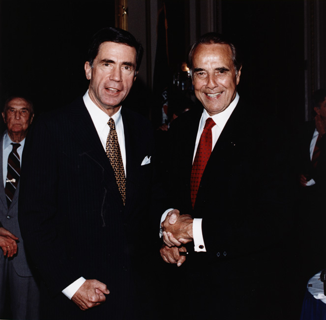 Bob Dole with Senator Charles Robb at retirement party
